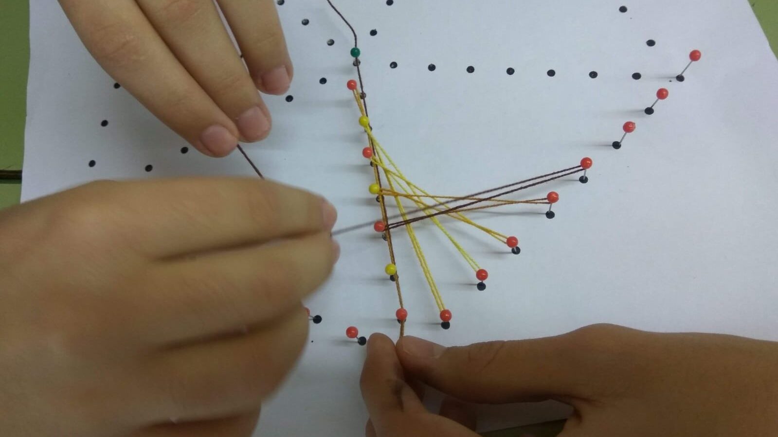 Dissenyar corbes reglades (evolvents) a partir de segments amb materials com ara fil o retoladors.
